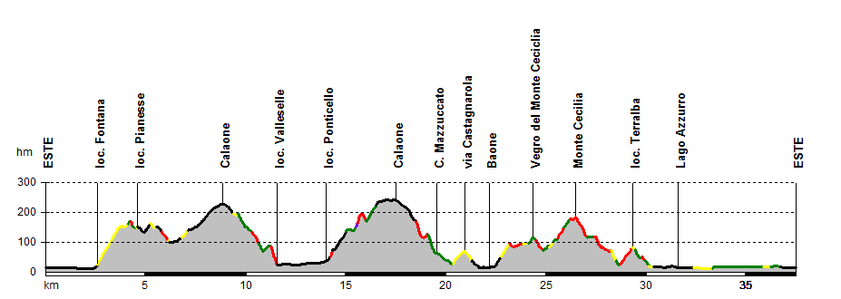 I colli che circondano Este ospitano un percorso piuttosto particolare, tortuoso e dai continui saliscendi, tra salite arcigne e discese tecniche, dove i numerosi sentieri e single track lasceranno spazio a rari momenti di riposo. In più occasioni si toccherà poi il “Percorso delle Fontane”, un itinerario promosso dal Comune di Baone per riscoprire antichi abbeveratoi, fonti e sorgenti.