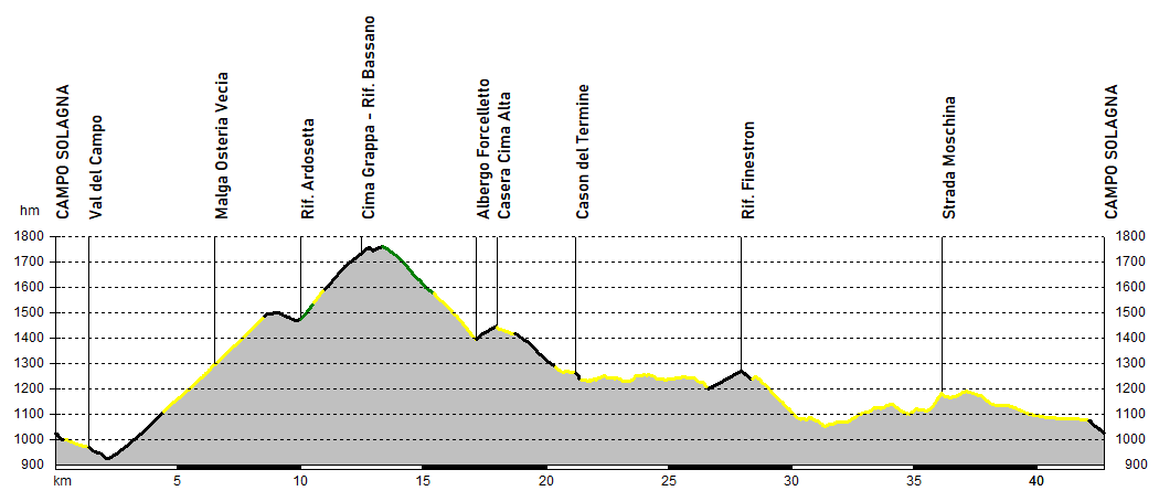 Si parte da Campo Solagna, località situata lungo la strada Cadorna che
