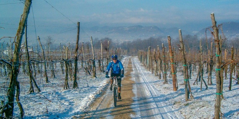 orientali del Collalto tra filari di vigne e single track nel bosco.