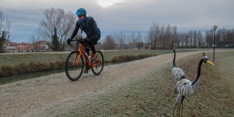 Gli argini e le ciclabili che costeggiano le vie d’acqua tra Venezia, Padova e Vicenza sono dei percorsi perfetti per spostarsi in quest’angolo di pianura veneta, con la ciclabile Treviso-Ostiglia che permette ulteriori rapidi spostamenti in direzione est-ovest. È in questo contesto che si andrà a pedalare per quasi cento chilometri abbracciando tre province.
