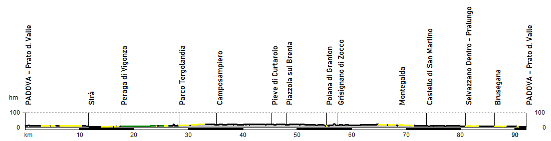 Il maestoso Prato della Valle segna l’avvio dell’itinerario, che si sposta subito verso la periferia di Padova per imboccare l’argine rettilineo del Canale Piovego fino a Strà. Attraversato il ponte sul Brenta si va ora a seguire il corso d’acqua della Tergola, solcando le campagne di Vigonza e Campodarsego in direzione nord-ovest su argini e tratturi rurali.