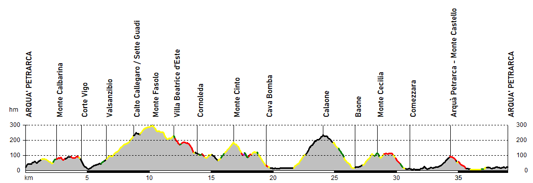 parte da Arquà, la città del Petrarca, toccando il centro storico e raggiungendo il vicino Monte Calbarina; si aggira quindi la bassa collina su single