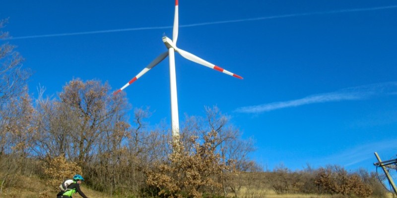 La parte iniziale dell’itinerario si snoda scorrevole prima sul tracciato della vecchia ferrovia Verona-Caprino e poi sulla ciclabile dell’Adige. Ben presto si comincia a salire verso il monte La Mesa, contraddistinto dalle grandi pale eoliche che fanno da sfondo ai primi divertenti sentieri che scendono a Rivoli.