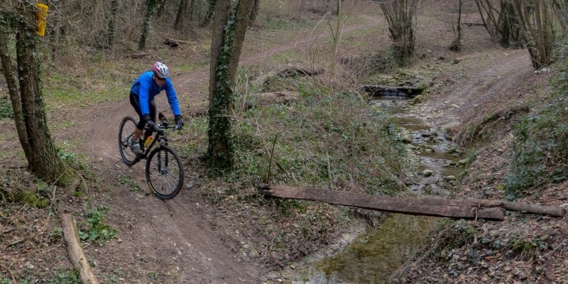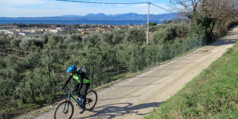 Una tecnica discesa conduce ora a Lubiara, dove il percorso si fa veloce e ondulato spostandosi a ovest in direzione del lago: si arriva infatti a toccare la Rocca di Garda aggirando l’Eremo di San Giorgio, attraversando poi le alture di Bardolino prima di imboccare il divertente trail tra i guadi della val Sorda.