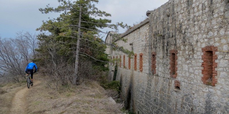 Si lambisce quindi il Forte Wohlgemuth andando poi ad affrontare la lunga e agevole scalata al forte San Marco: la salita è sinuosa e costante, caratterizzata da numerosi tornantini e un continuo affaccio panoramico verso sud che – nella parte sommitale – si spinge fino al lago di Garda.