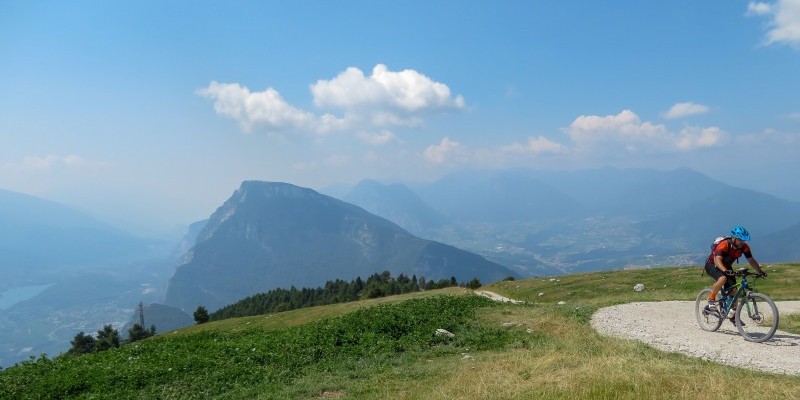Percorso dai grandiosi panorami che permette di godere della vista del Gruppo di Brenta e della Valle dei Laghi fino al lago di Garda. Si attraversa tutta la dorsale del monte Gazza, una zona dove vive l’orso, scendendo poi a Andalo sui sentieri del Dolomiti Paganella Bike Park.