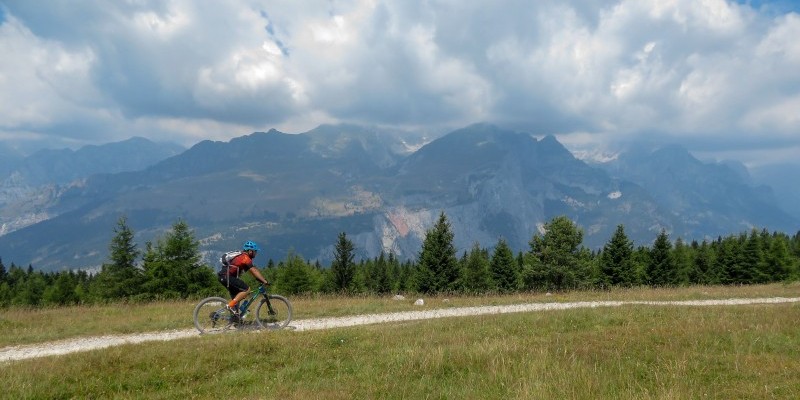 Il tratto più ripido arriva però al termine dell’asfalto, sulle rampe cementate prima e dopo malga Gazza; ci si trova ora al centro di uno strepitoso balcone panoramico dal quale si possono scorgere il lago di Garda a sud e le vette Dolomitiche, verso est. Ma anche tutto il gruppo delle Dolomiti di Brenta, a ovest, che farà da sfondo alla lunga traversata che si va ora a intraprendere.