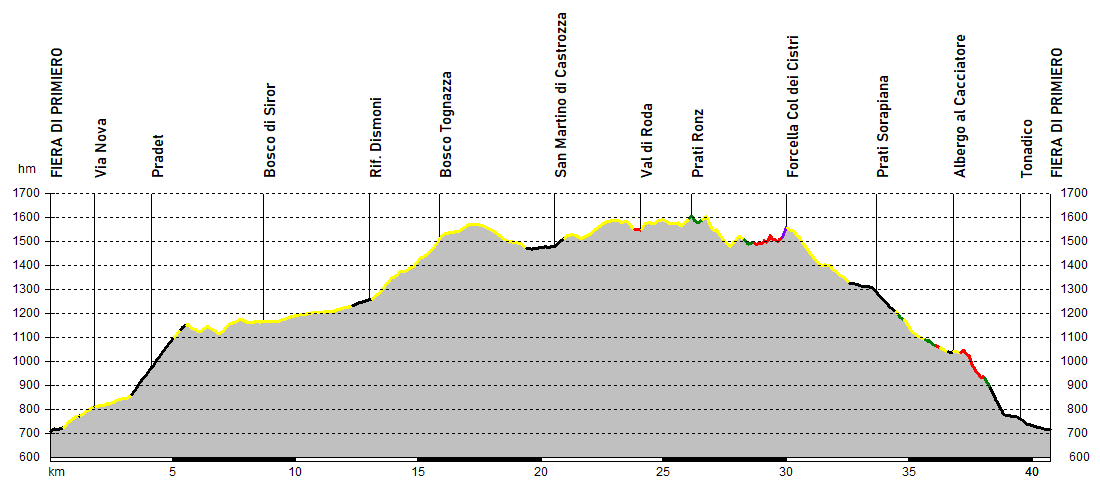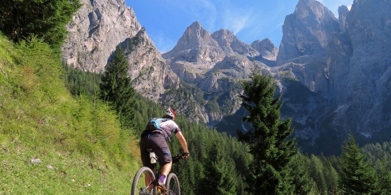 del monte Cimerlo, scendendo poi rapidamente verso la Val Canali: qui la picchiata concusiva verso Tonadico si fa divertente sui trail che riportano a valle.