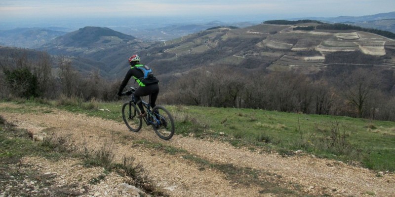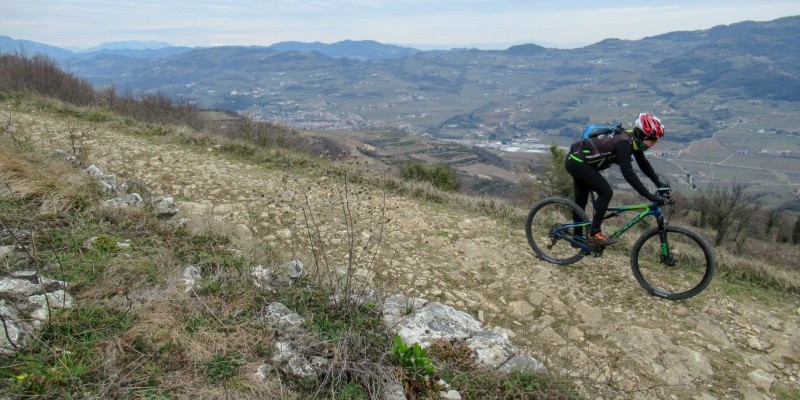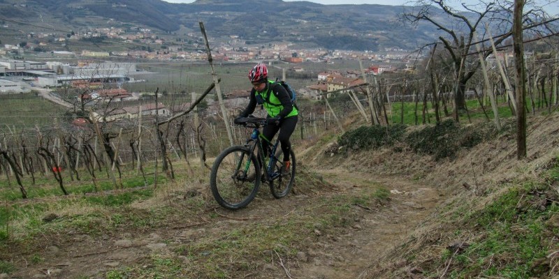 Il lembo orientale della provincia di Verona è terra di vino, di ulivi e di ciliegi, di verdi colline che dalla bassa pianura veronese salgono gradualmente verso le alte quote della Lessinia e delle Piccole Dolomiti: un territorio da scoprire in mountain bike, tra dolci crinali e vasti panorami.