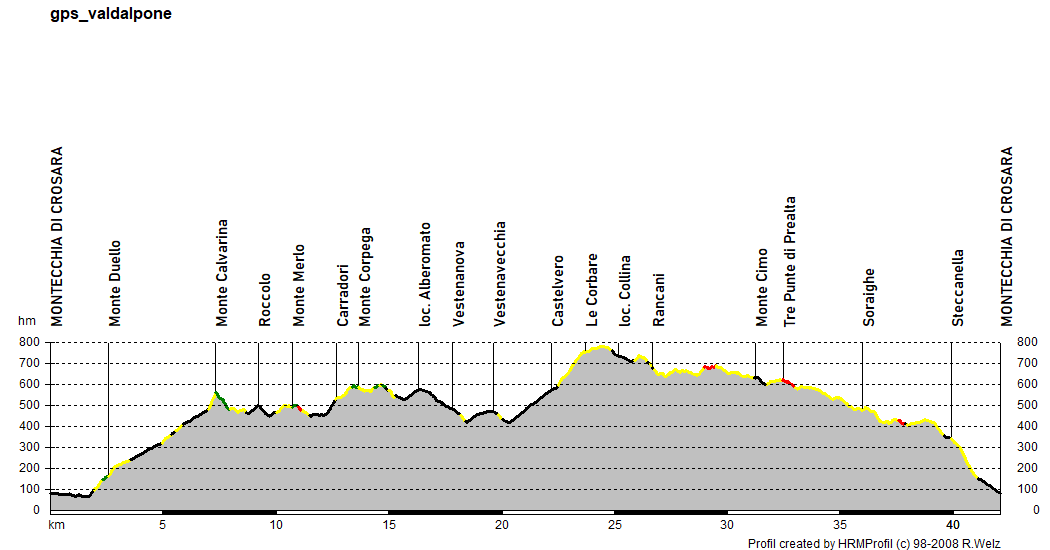 seconda asperità del tour: regolare e asfaltata fino a Castelvero,