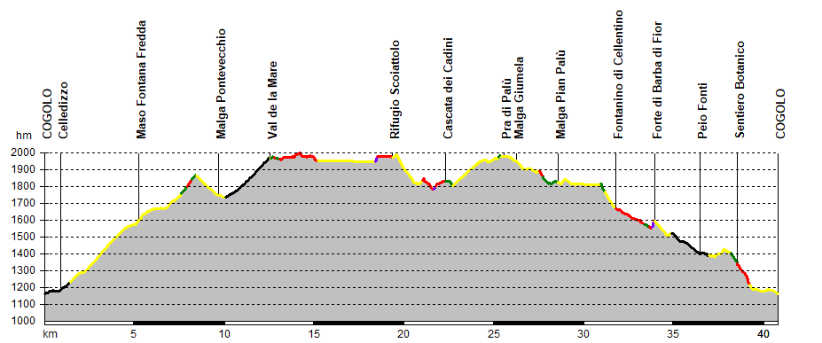 quindi in val di Monte seguendo la strada militare della Vegaia fino al