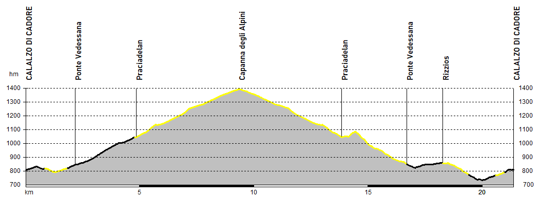 strada che sale da Calalzo via Praciadelan, proseguendo poi sulla