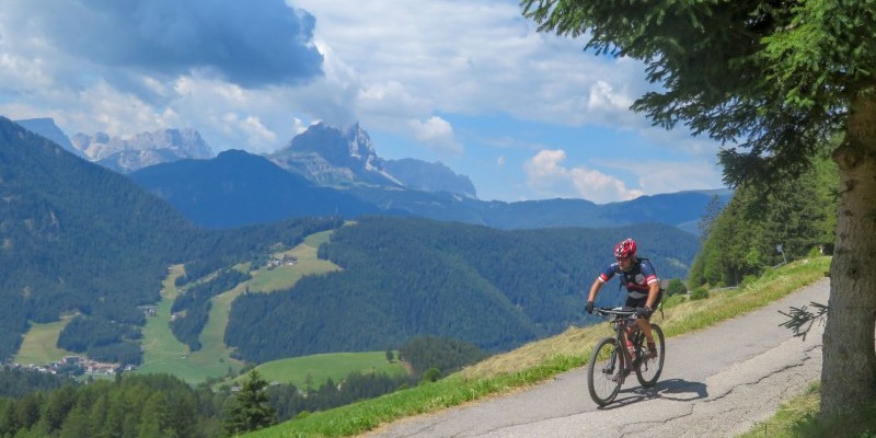 sulle Odle e le vette della Val Badia, snodandosi dapprima su sterrate