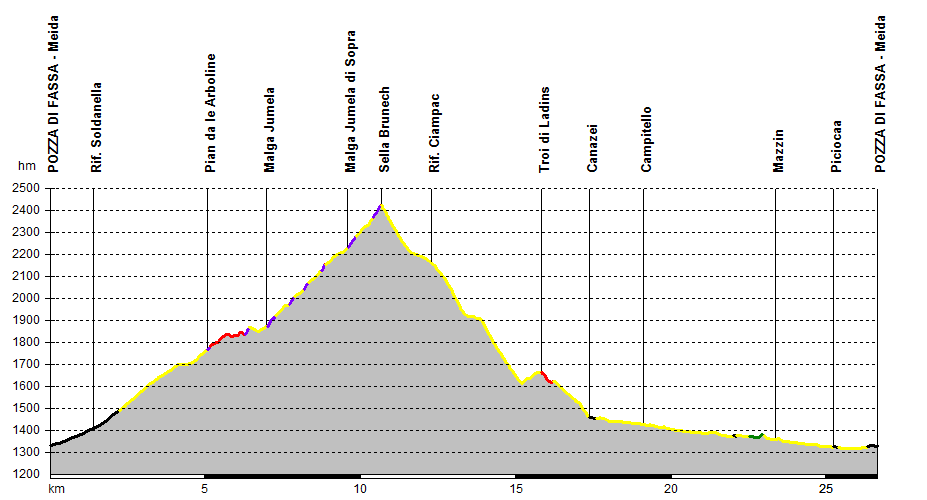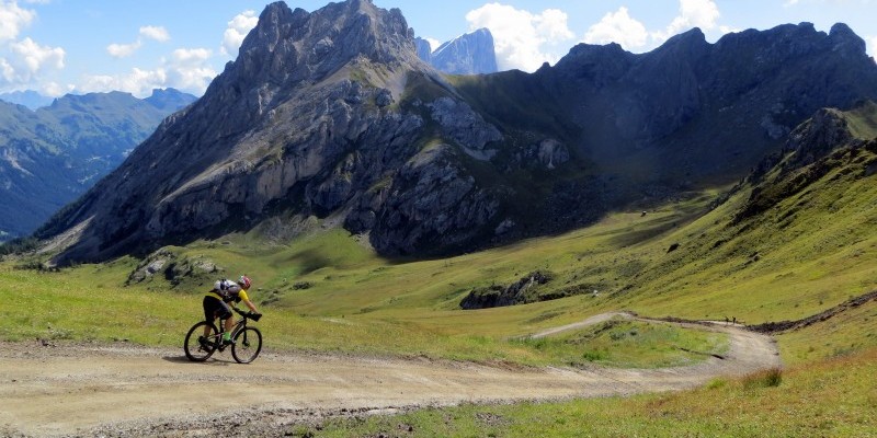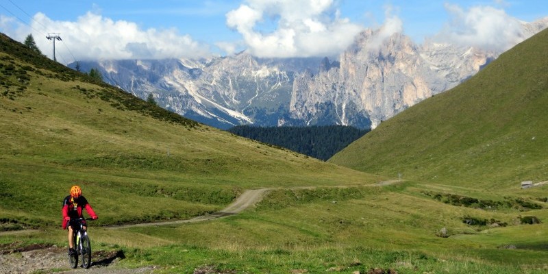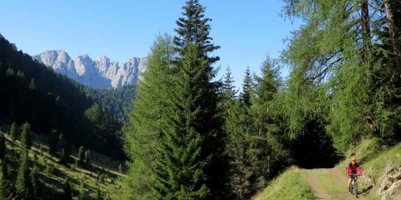 Nel cuore delle Dolomiti, al centro della Val di Fassa, la Val Jumela è forse l’ultimo angolo di questa zona non ancora interessato dal turismo: gli escursionisti sono infatti rari non essendoci rifugi o impianti di risalita estivi, mentre la strada principale di accesso, ripida e impervia, è frequentata solamente dai proprietari delle malghe in quota. Una agevole via secondaria permette però di arrivarci, senza troppa fatica, in bicicletta: raggiunta la valle, però, si dovranno fronteggiare erte di tutto rispetto dove il piede a terra sarà molto frequente.