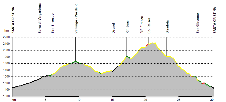 L’itinerario si snoda sul versante nord della Val Gardena, esplorandone alcuni dei luoghi più attraenti come la Vallunga, nel cuore del gruppo del Puez, e il Col Raiser, un vero e proprio balcone panoramico sulle Dolomiti gardenesi.