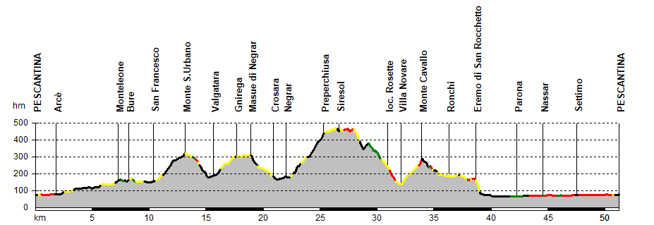 aspre e panoramiche pendenze del monte S.Urbano, proseguendo poi su