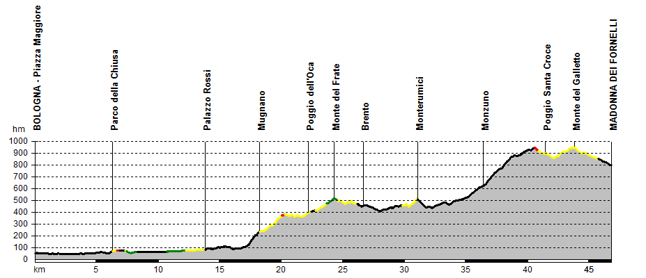 di pianura la lunga e discontinua salita che contraddistingue la tappa: le pendenze