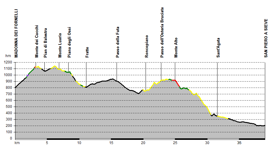 nelle colline del Mugello, la tappa si conclude sulla rotabile che