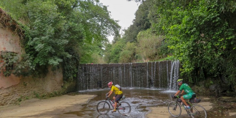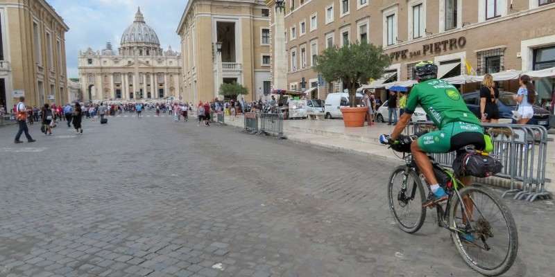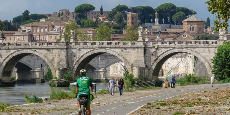 tornantini ciottolati, andando poi a imboccare la ciclabile del Tevere