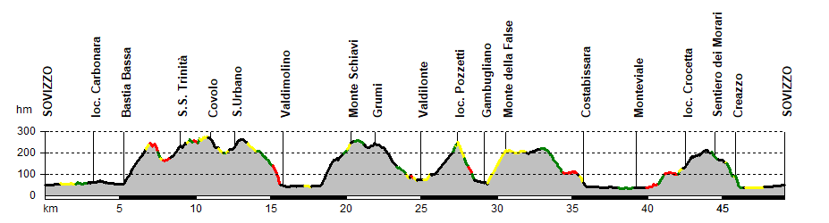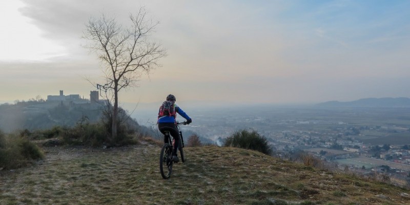 Le basse colline a ovest di Vicenza, quelle racchiuse dagli abitati di Montecchio Maggiore, Castelgomberto, Costabissara e Creazzo, offrono lo spunto per un itinerario divertente ma non semplice, dove cinque salite relativamente brevi si alternano ad altrettante discese sui numerosi sentieri della zona.