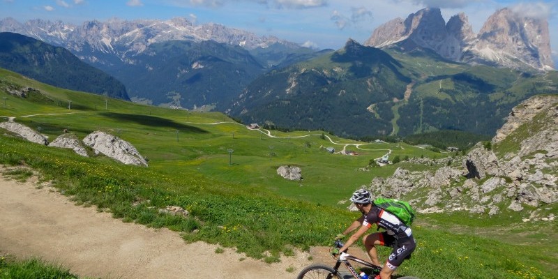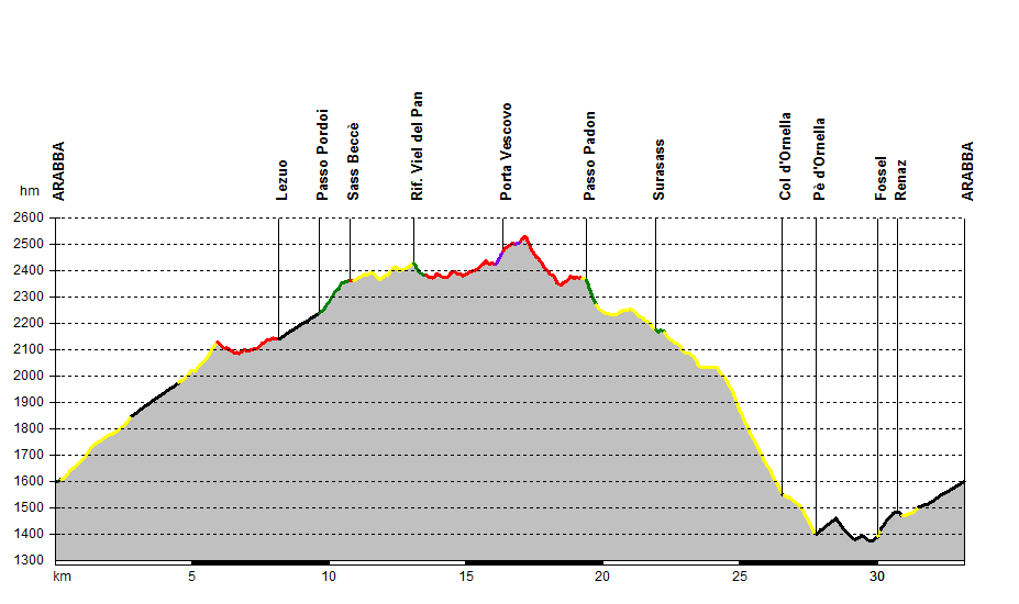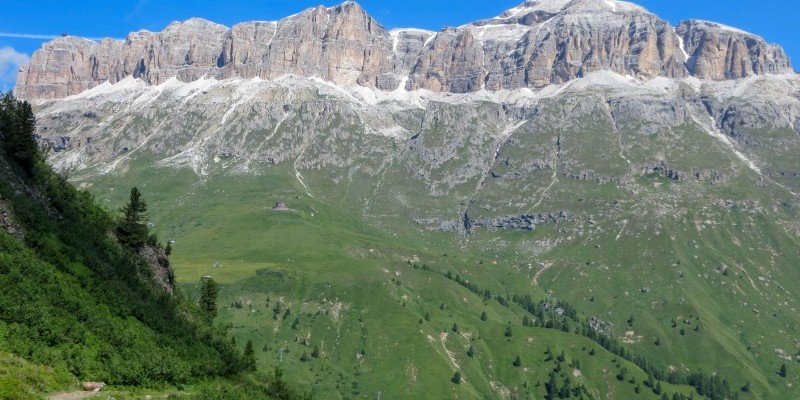 fronte sul gruppo del Sella che si mantiene in quota fino a Lezuo, da