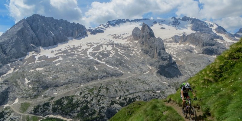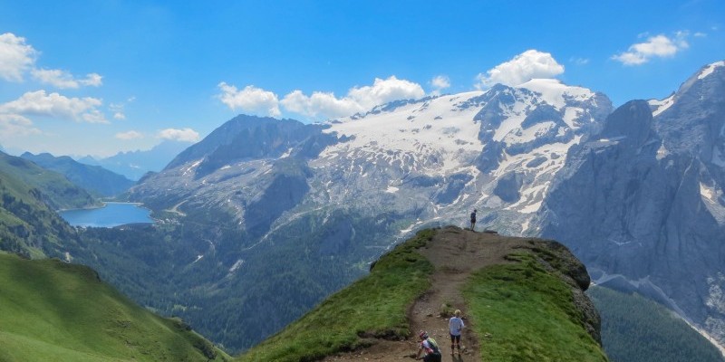 Collocato tra i passi Pordoi e Fedaia, il sentiero del Viel del Pan è