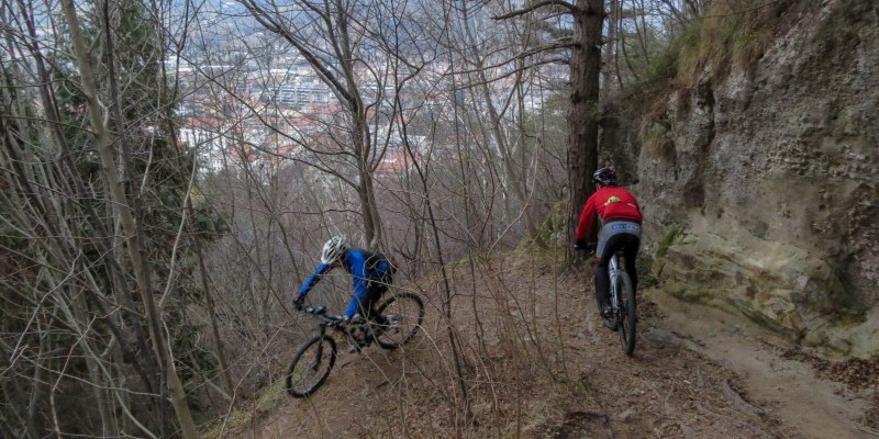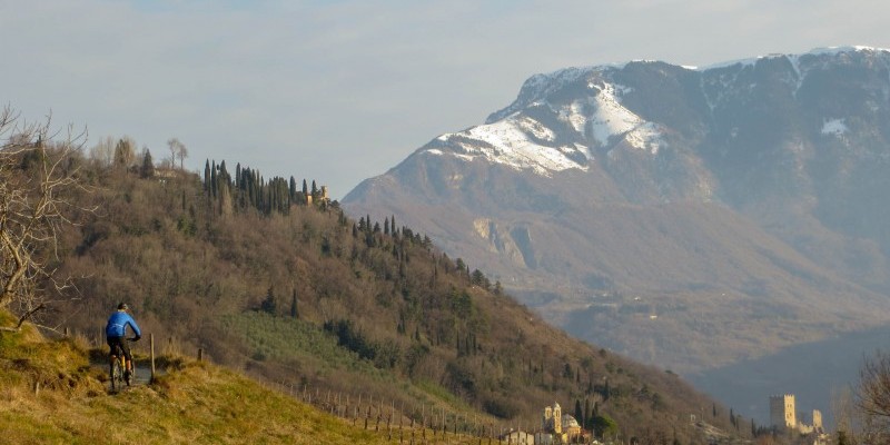 Si prosegue, ora in discesa, alternando asfalto e sentieri fino alle pendici del Monte Altare, dove un lungo single track, talvolta stretto ma mai eccessivamente tecnico, effettua tutto il periplo del colle scendendo infine all’Area Fenderl.