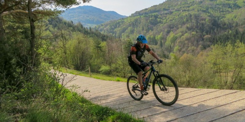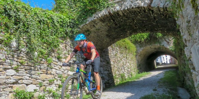 Per uscire dalla forra si dovrà procedere a piedi per alcuni minuti, seguendo il sentiero scalinato che diventa ben presto ripida cementata. Da Sant’Antonio Tortal si riprende a scendere, dapprima sull’obbligata strada principale e successivamente sui single track per Casteldardo. In vista dell’agglomerato rurale si dovrà effettuare un facile traverso tra i prati arrivando poi alla curiosa torre difensiva immersa tra i vigneti.